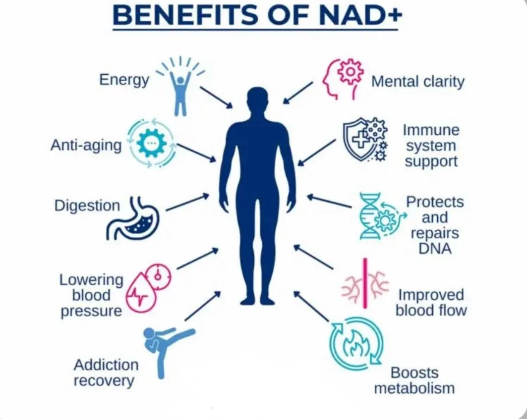 NAD+ (Nicotinamide Adenine Dinucleotide) is a crucial molecule found in every cell of your body. It plays a key role in turning the nutrients from your food into usable energy. Beyond its role in energy production, NAD+ is involved in several important biological processes, including DNA repair, cellular signaling, and regulating your body's internal clock. Although it may not be as well-known as vitamins or minerals, NAD+ is essential for maintaining overall health. In this post, we’ll explore what NAD+ is, why it’s important, and how it can benefit you.